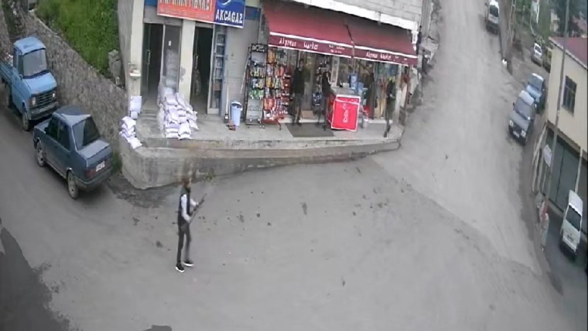 Özgür Bıyıklı ilçede toprağa verilirken, silahlı kavga anları çevredeki bir iş yerinin güvenlik kamerasına yansıdı.