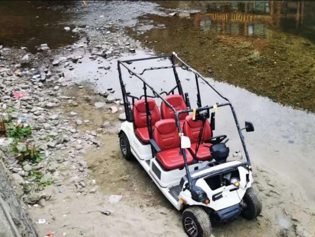Trabzon'da dün sabah saatlerinde ilçeye bağlı dünyaca ünlü turizm merkezi Uzungöl'de Körfez ülkelerinden tatil için gelen 4 turist, kahvaltı sonrası göl kıyısında gezintiye çıkmak için elektrikli golf aracı kiraladı.