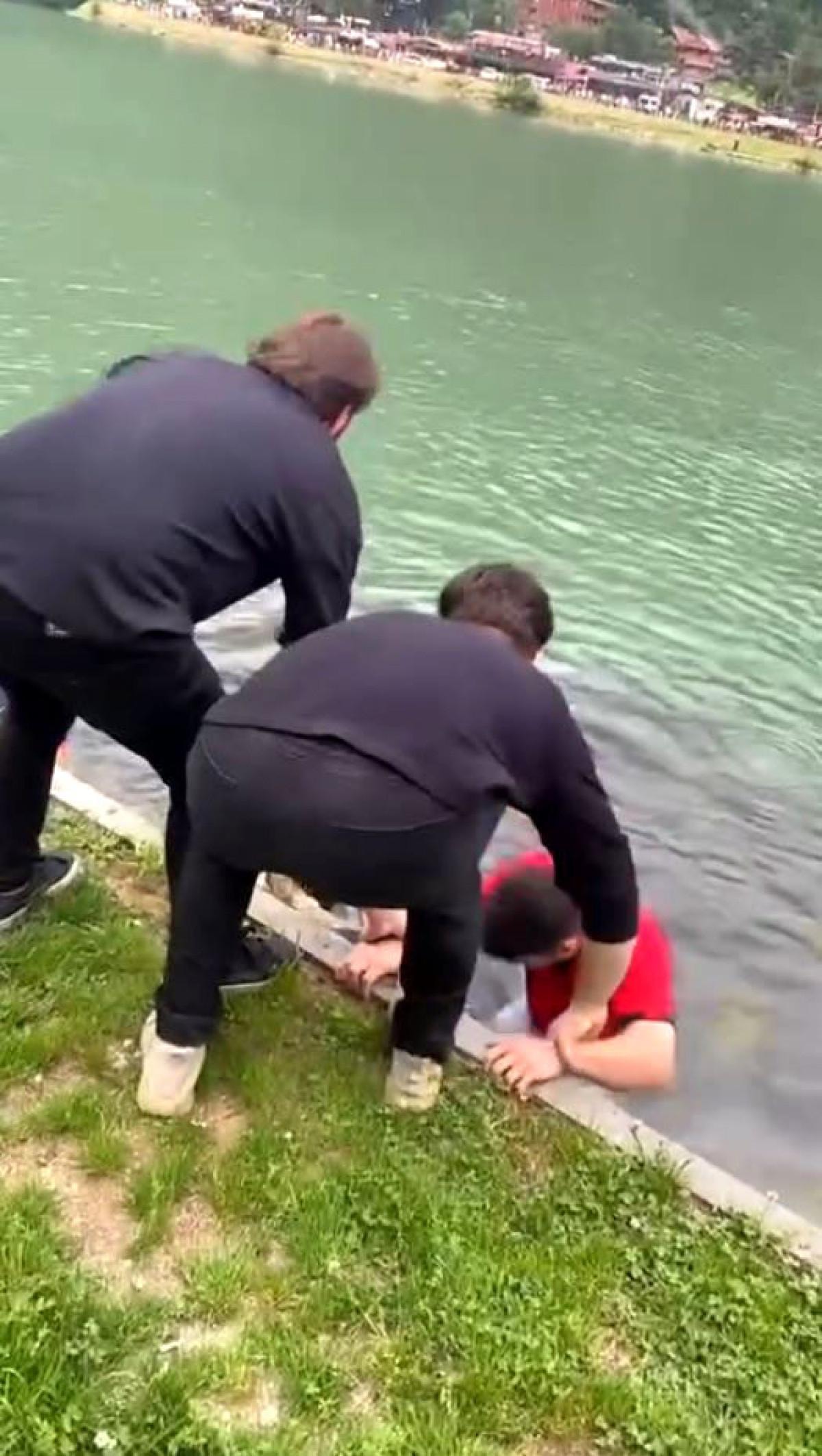 Golf arabasıyla gezerken Uzungöl'e düştüler