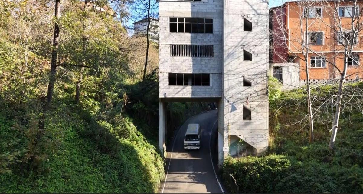 Garip bina yapıları ile dikkat çeken Doğu Karadeniz şehirleri, bu konuda yeni örnekler veriyor.