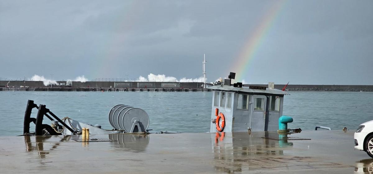 Dalgalar, Sürmene ilçesi Yeniay Mahallesi Yeniçam Tersanesi'nde bir süre önce hizmete giren Türk Deniz Kuvvetleri Komutanlığı'nın 9'uncu Deniz Üssü'ne ait rıhtıma çıktı.