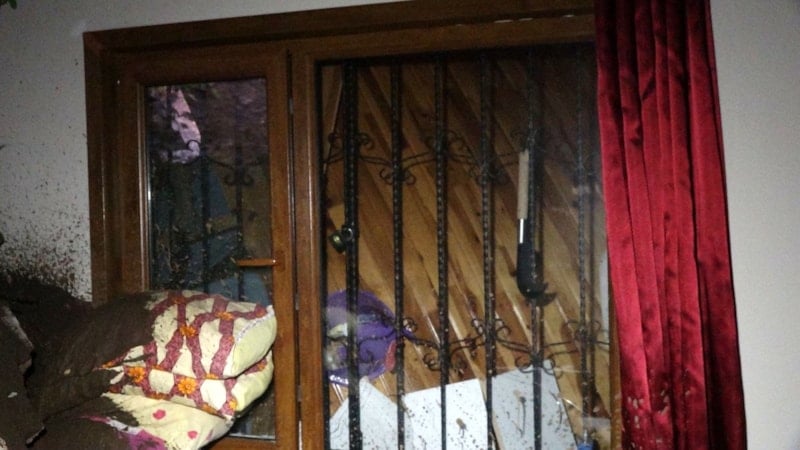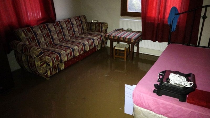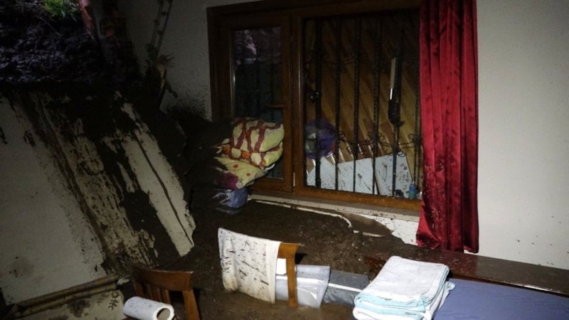 Yamaçtan kopan toprak, kaya ve ağaç parçaları, yağmur suyu ile evin arka duvarına birikti. Yamaçtan akan toprak kütlesi, evin duvar ve pencerelerini kırarak mutfağa ve yatak odasına doldu.