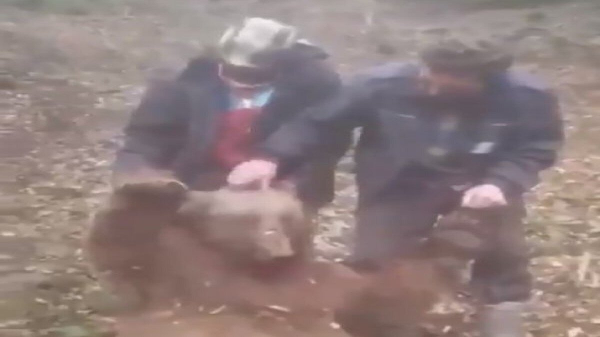 Avlanmaya çıkan 2 avcı, bir ayıyı vurdu; ardından yanına yaklaşarak kafasına onlarca yumruk darbesi indirdi.