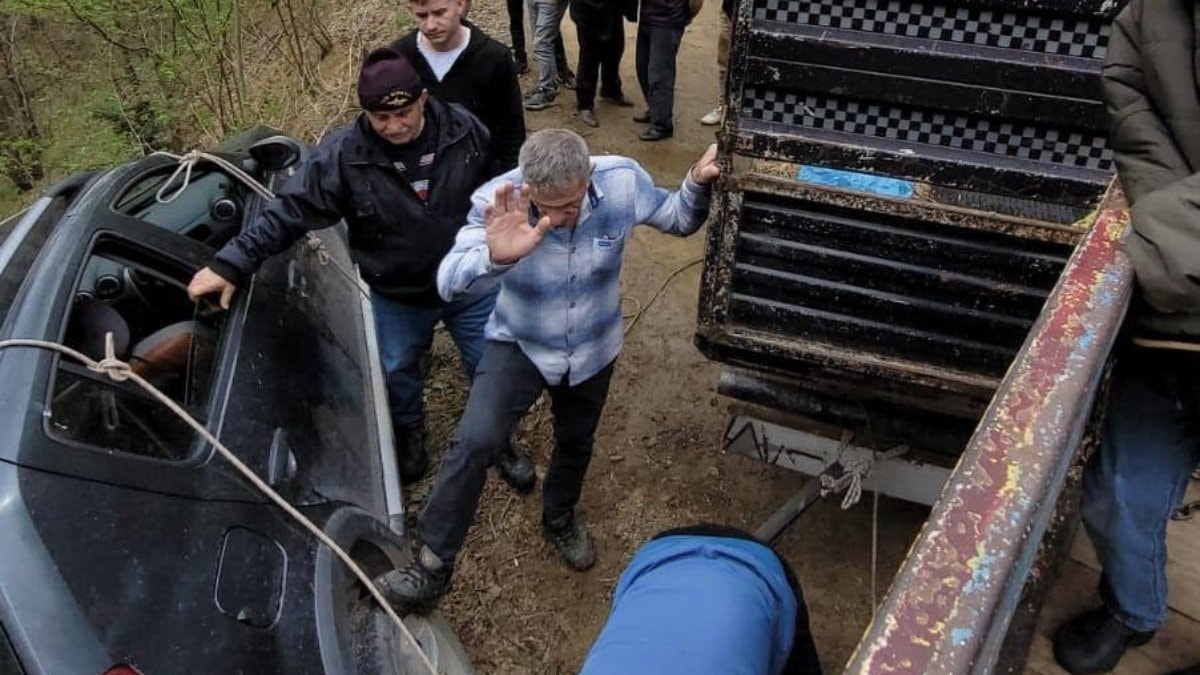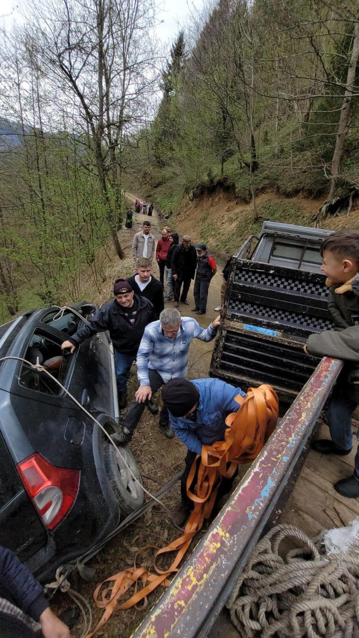 Uzun uğraşlar sonucu araç kurtarıldı.