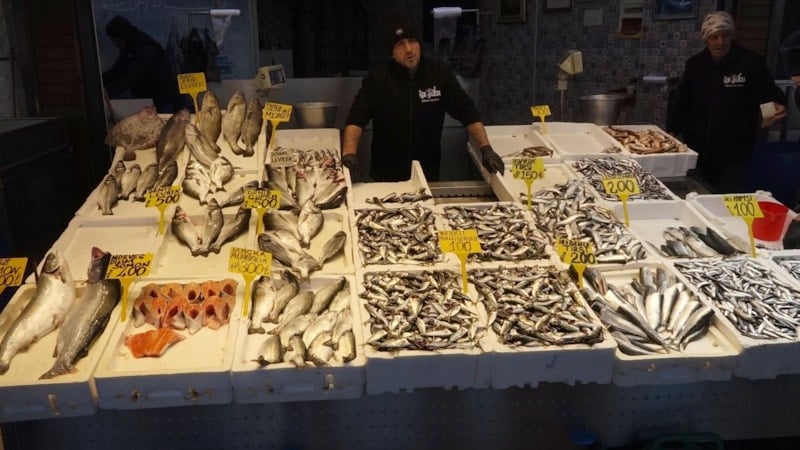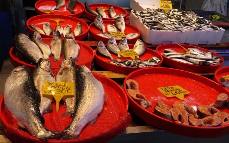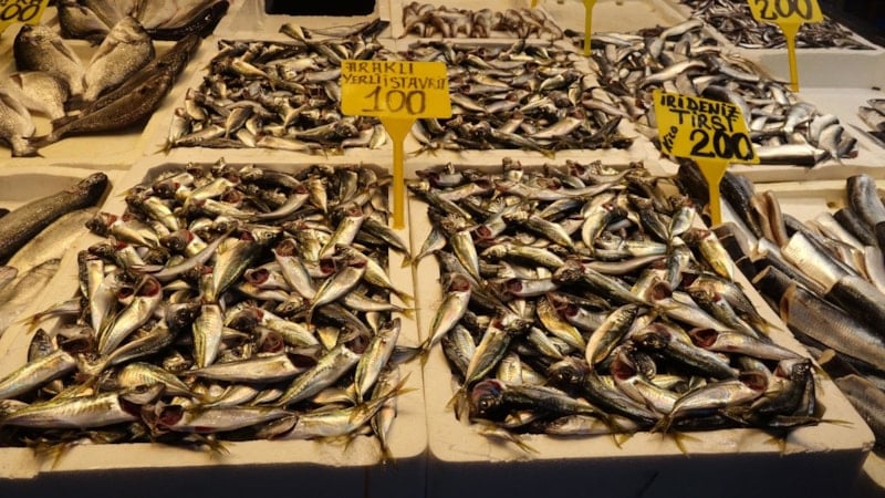 Trabzon Balıkçılar Hali'nde hamsinin ve istavritin kilosu 100, somon 300, tirsi 200, çinekop ve çupra 400, levrek 500 liradan satışa sunuluyor.