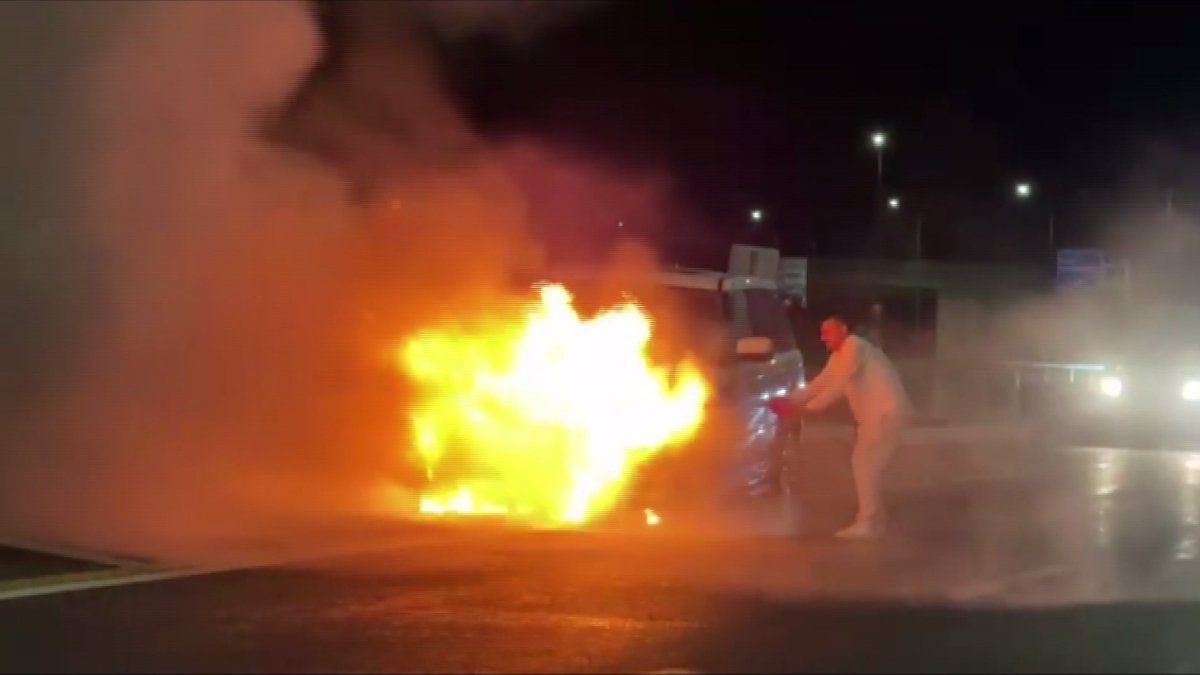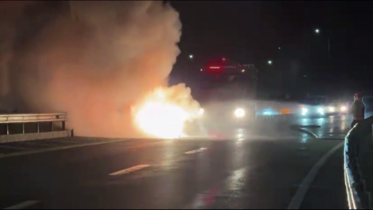 Yangın kısa sürede büyüyerek tüm aracı sardı.