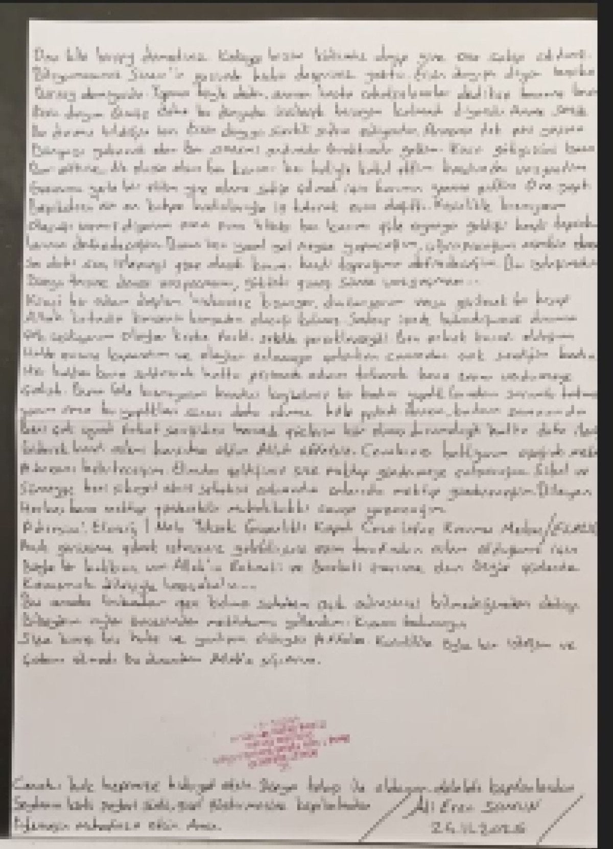 2 sayfalık mektupta, "Başınız sağ olsun. Ölüm haberini aldığımda kahroldum. Kendime gelmem çok zaman aldı. Kendime sürekli 'nasıl böyle oldu' soruları soruyorum. Allah bizlere sabır ve dayanma gücü versin. Mahkemede tek bir yalan konuşmayacağım.