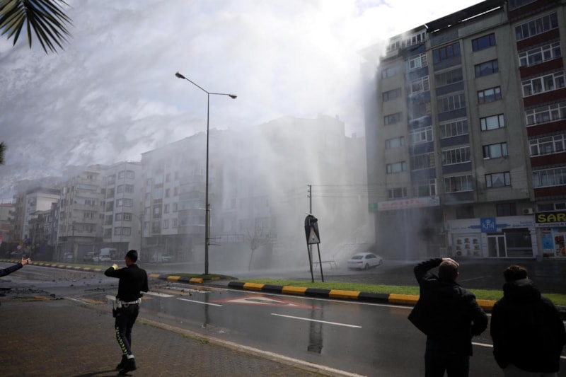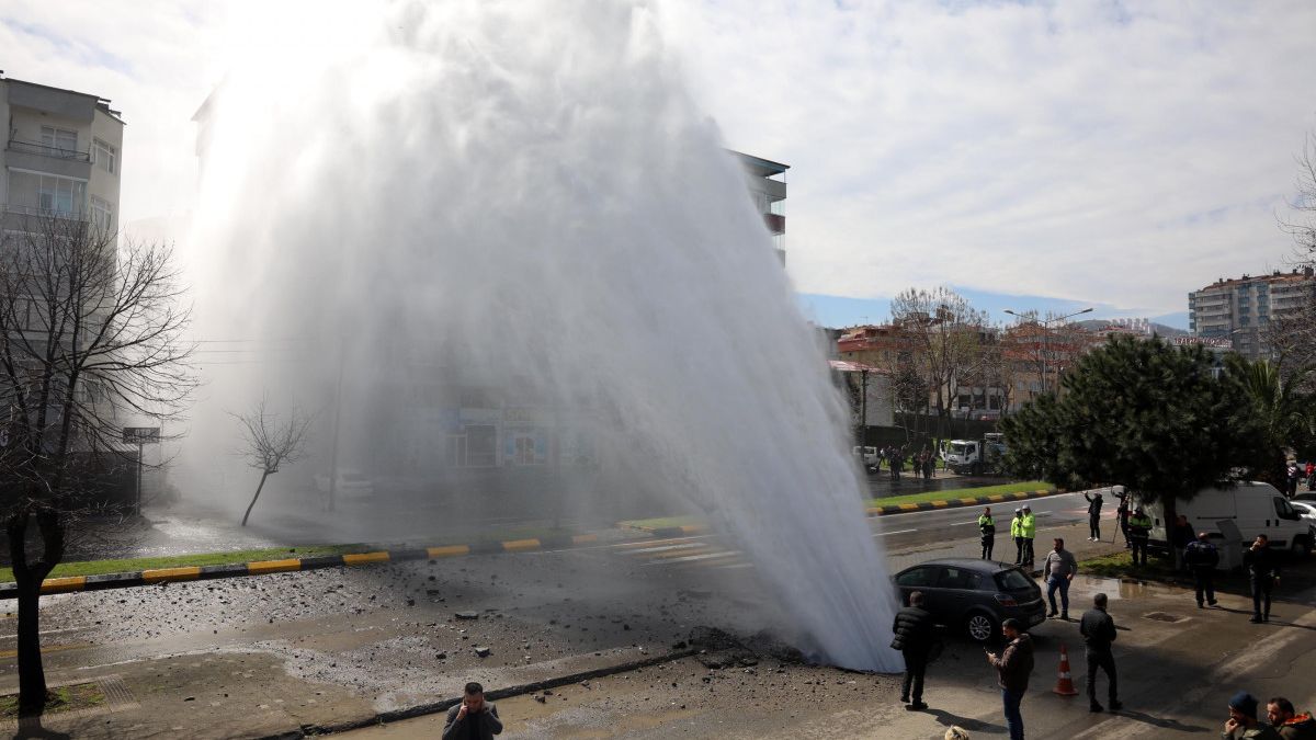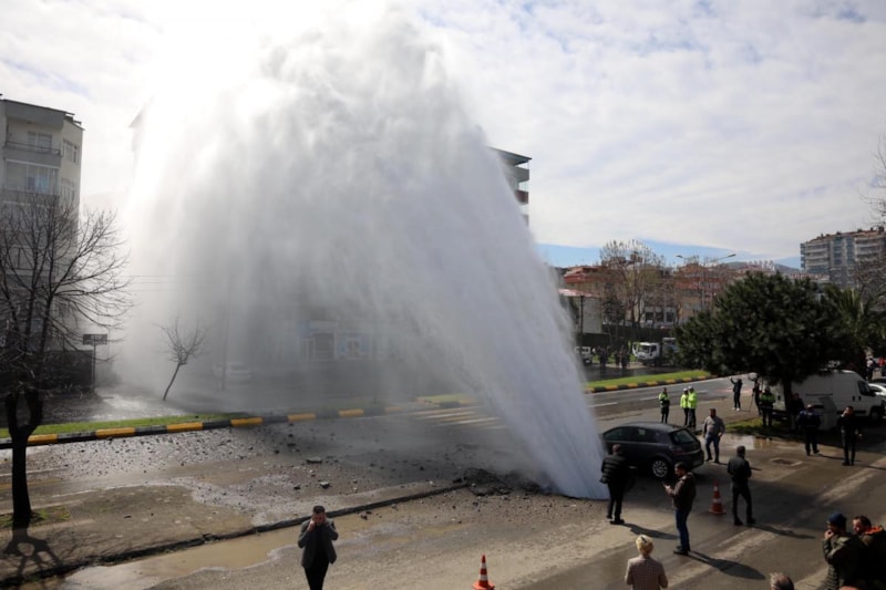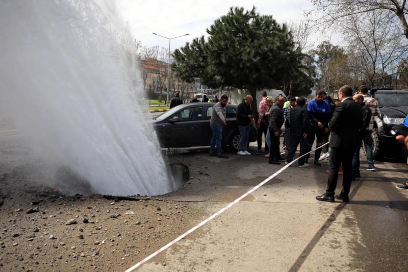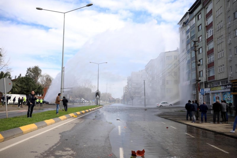 Bölgedeki su akışını kesen ekipler, temizlik ve arıza onarım çalışması başlattı.