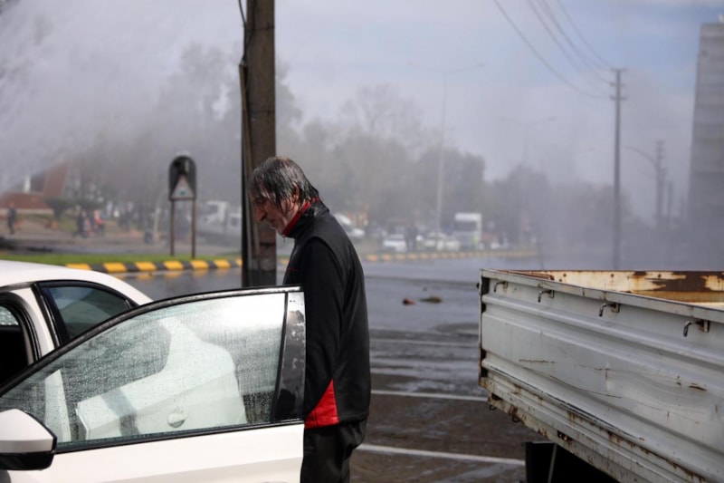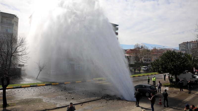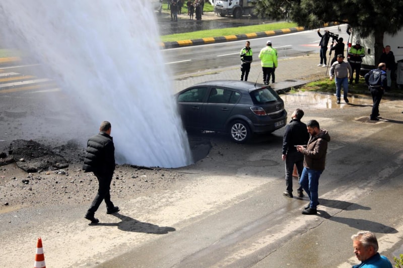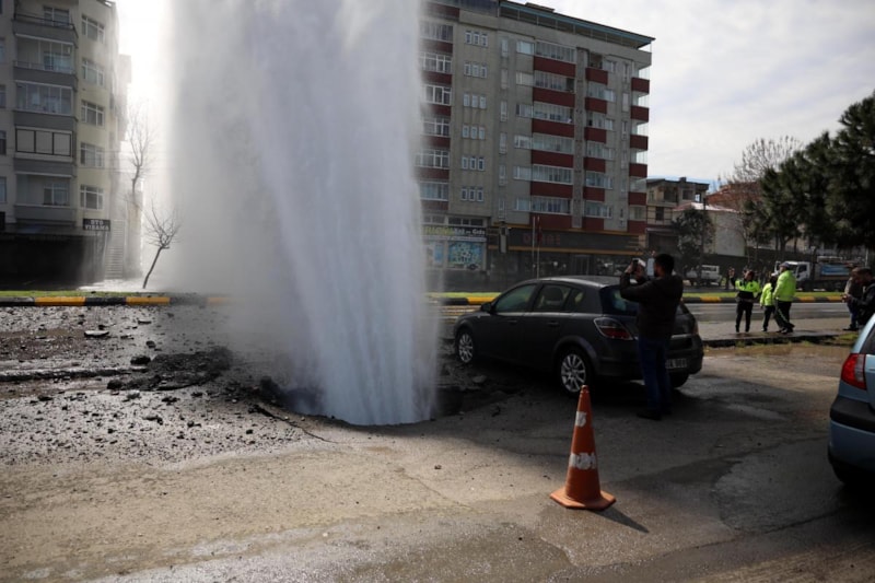 Yer altından çıkan tazyikli su havaya fışkırdı. Yükselen su, yolun karşısındaki 8 katlı apartmana sıçradı, balkonları su bastı.