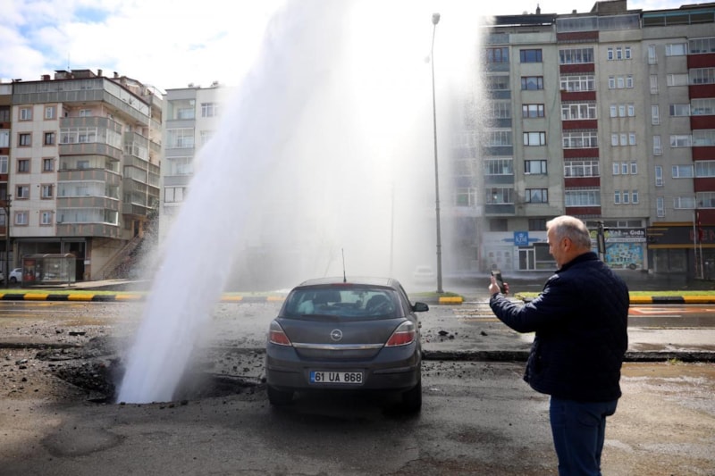Trabzon'da patlayan ana su borusu ortalığı savaş alanına çevirdi.