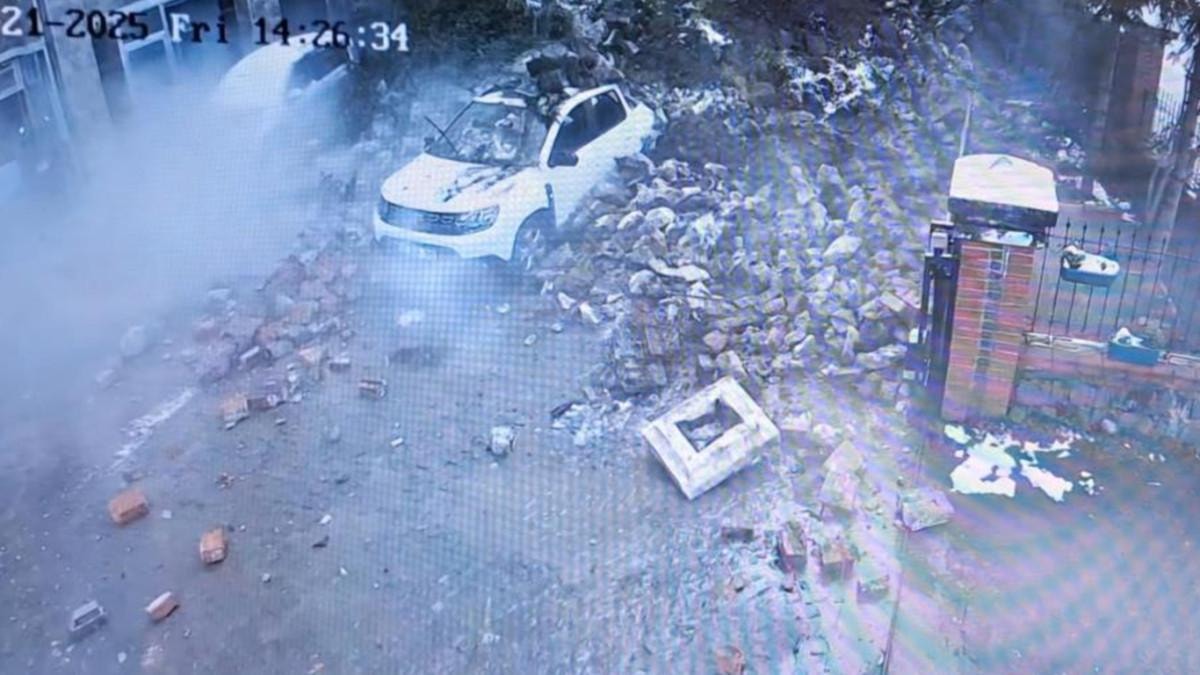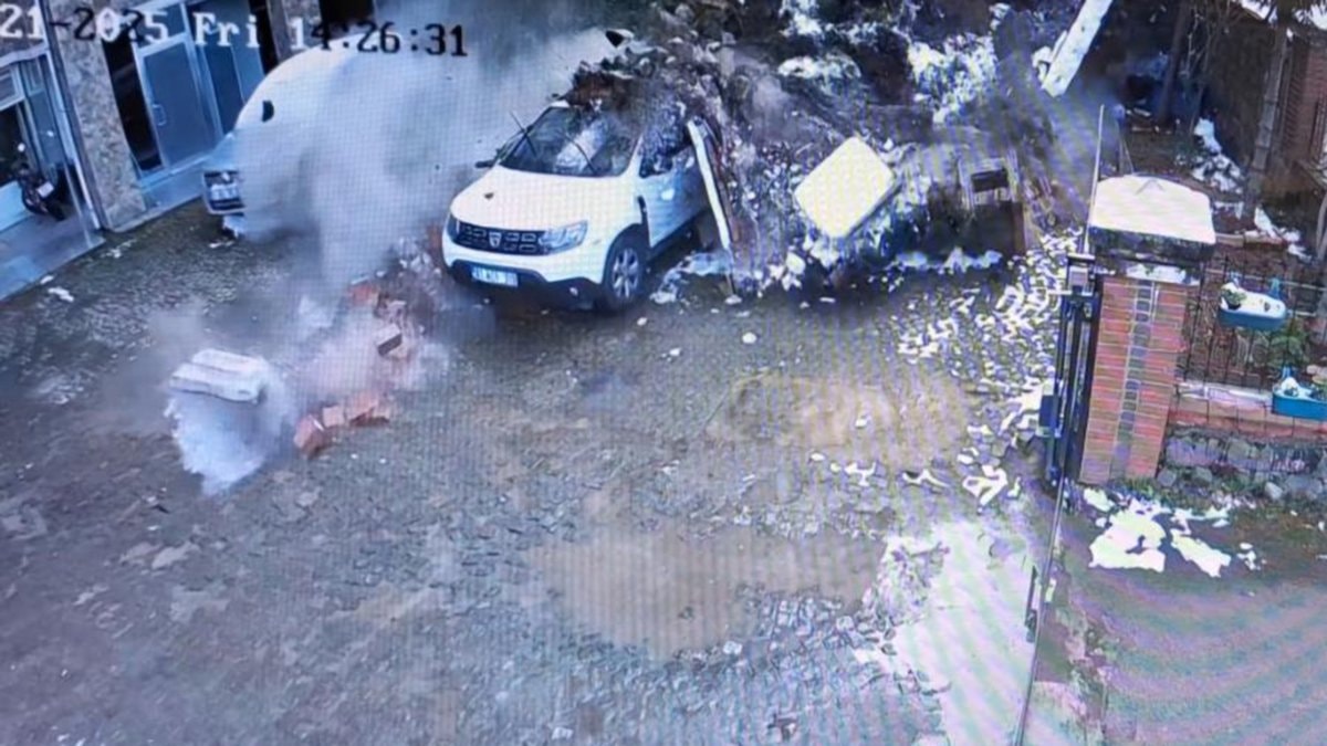 Karslıoğlu'nun aracıyla ayrılmasından saniyeler sonra sitenin bahçesindeki istinat duvarı çöktü.