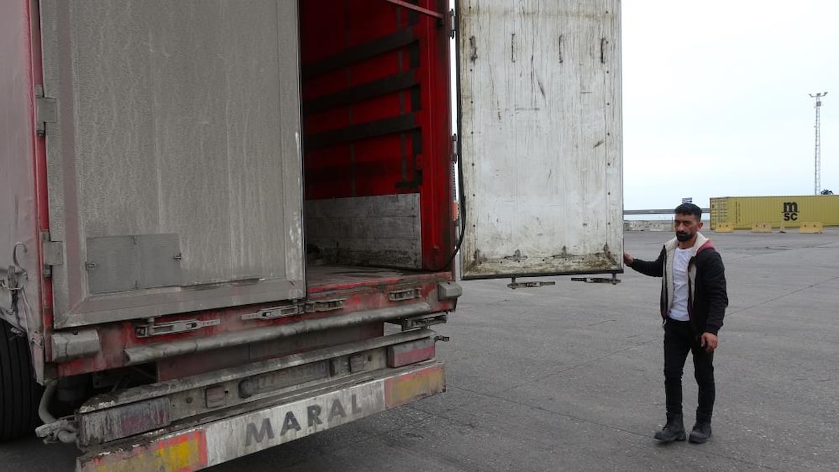 Sabah saatlerinde Trabzon Limanı'na ulaşan şoför, çay içmek için dışarı çıktığında dorsenin içinden ses geldiğini fark etti.