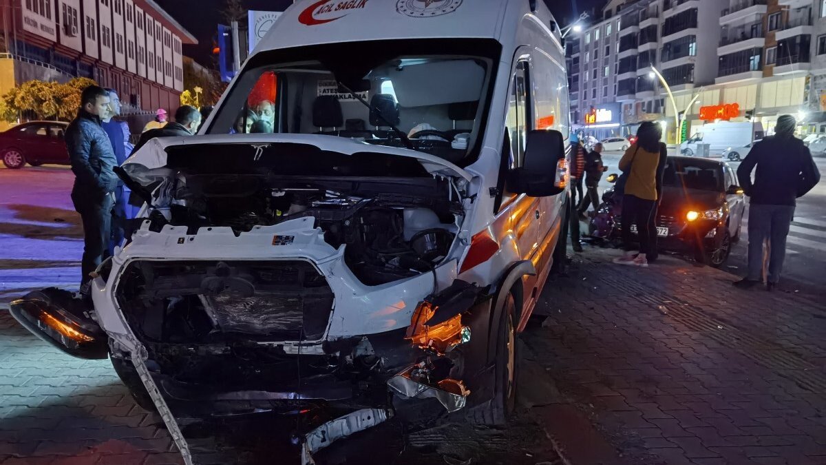 Ambulans kazanın etkisiyle kaldırıma çıkarken, her iki araçta büyük hasar meydana geldi.