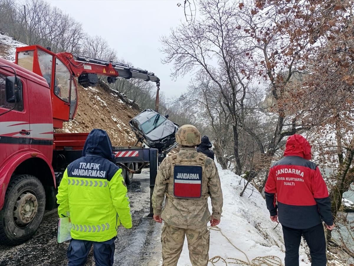 Suya batan araç, jandarma ekipleri tarafından yapılan çalışmayla çıkarıldı.