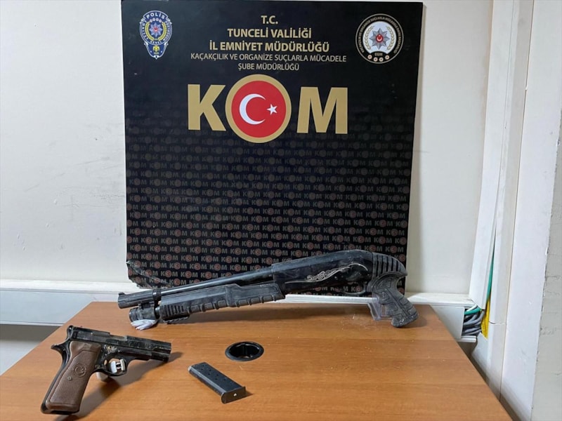 Tunceli'de inşaat alanında yapılan aramada ruhsatsız tabanca, pompalı tüfek ve bir miktar esrar ele geçirildi.