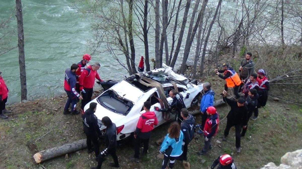 Olay yerinden 250 metre uzaklıkta tespit edilen aracın sudan çıkarılması için çok sayıda ekip sevk edildi.