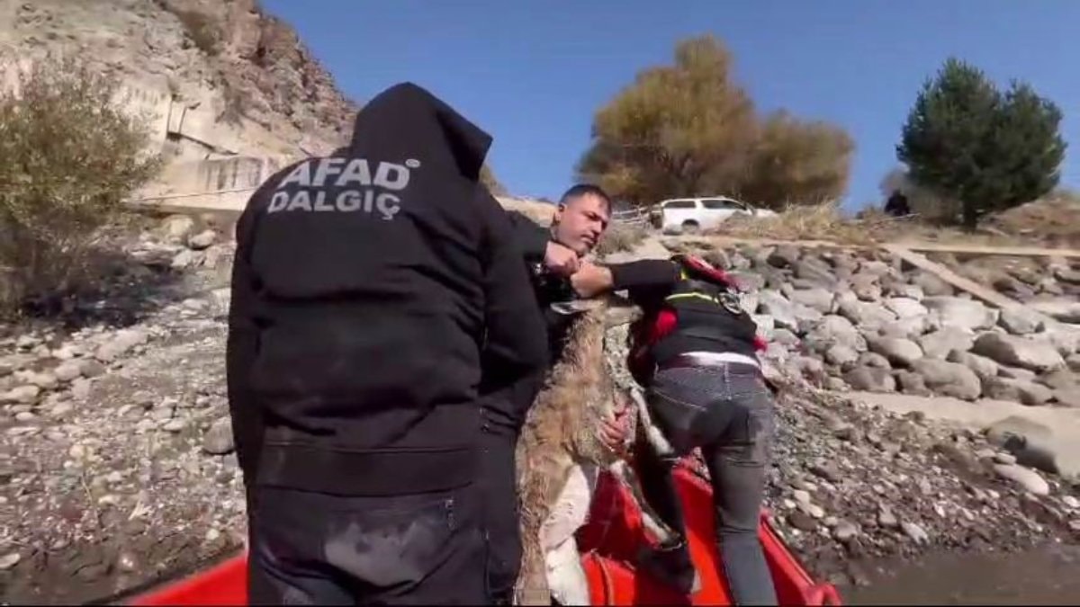 Tunceli'de nehre düşen yaban keçisinin imdadına AFAD yetişti.