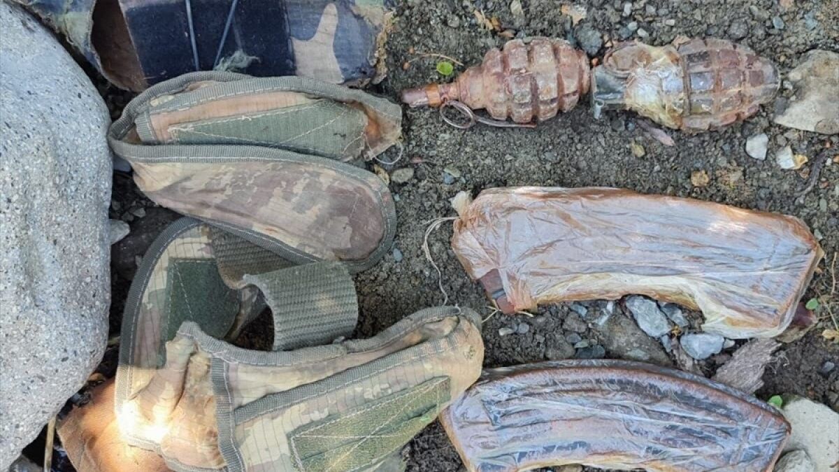 Özel eğitimli köpeklerle gerçekleştirilen aramada, ormanlık alana saklanan 2 el bombası, kalaşnikof marka uzun namlulu tüfeğe ait 60 mermi ve 2 şarjör ele geçirildi.