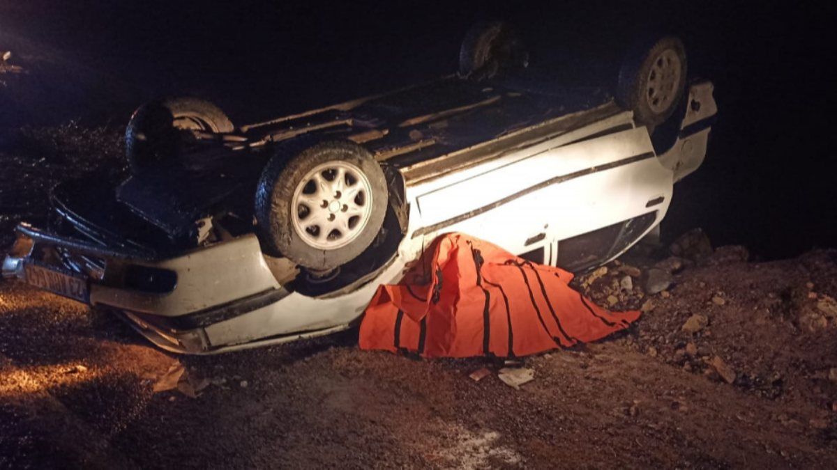 Kayganlaşan yol nedeniyle 26 yaşındaki güvenlik korucusu Sefer Demir'in kontrolündeki 23 ABN 642 plakalı otomobil, takla atarak şarampole devrildi.