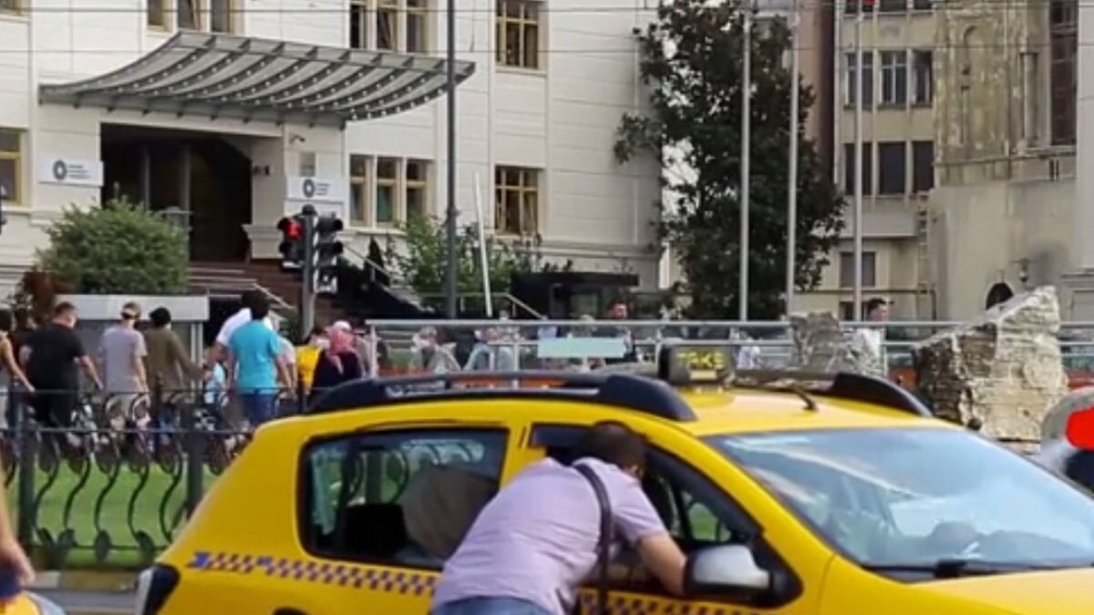 Yolcuların arka araca geçmesinin ardından öndeki taksiye iki yabancı turist bindi.