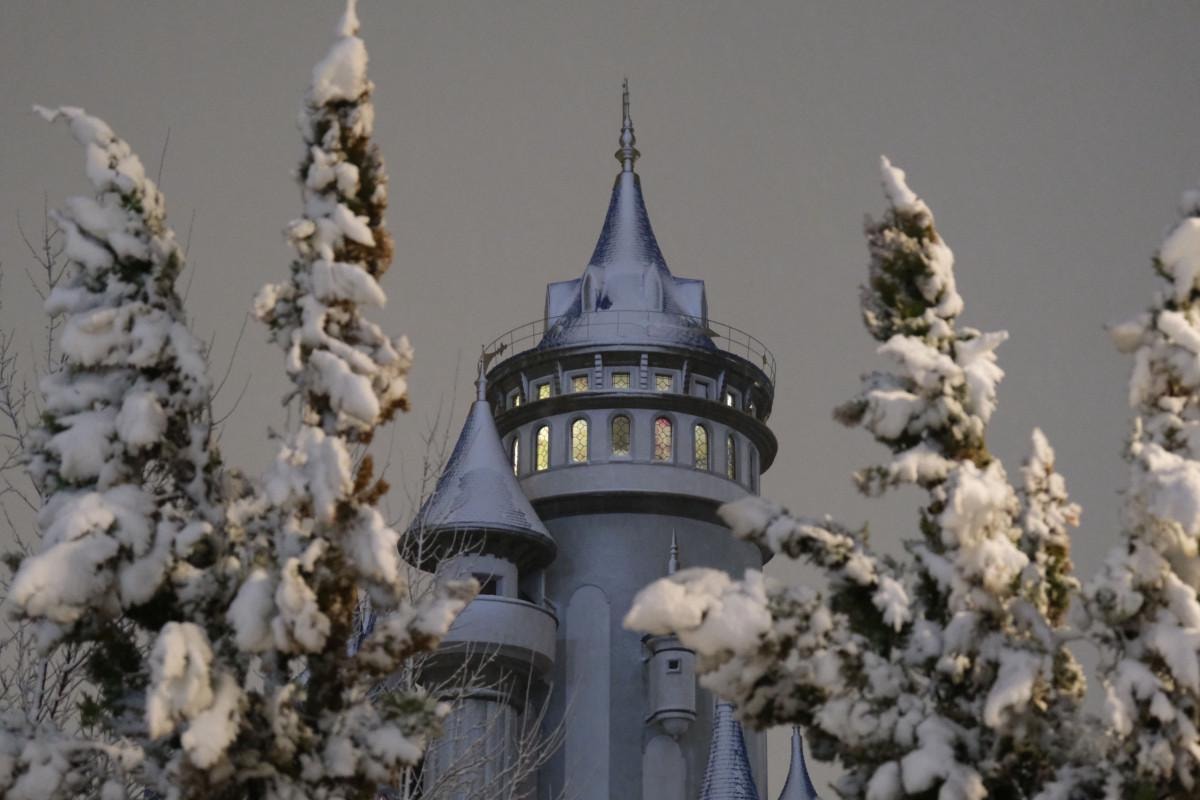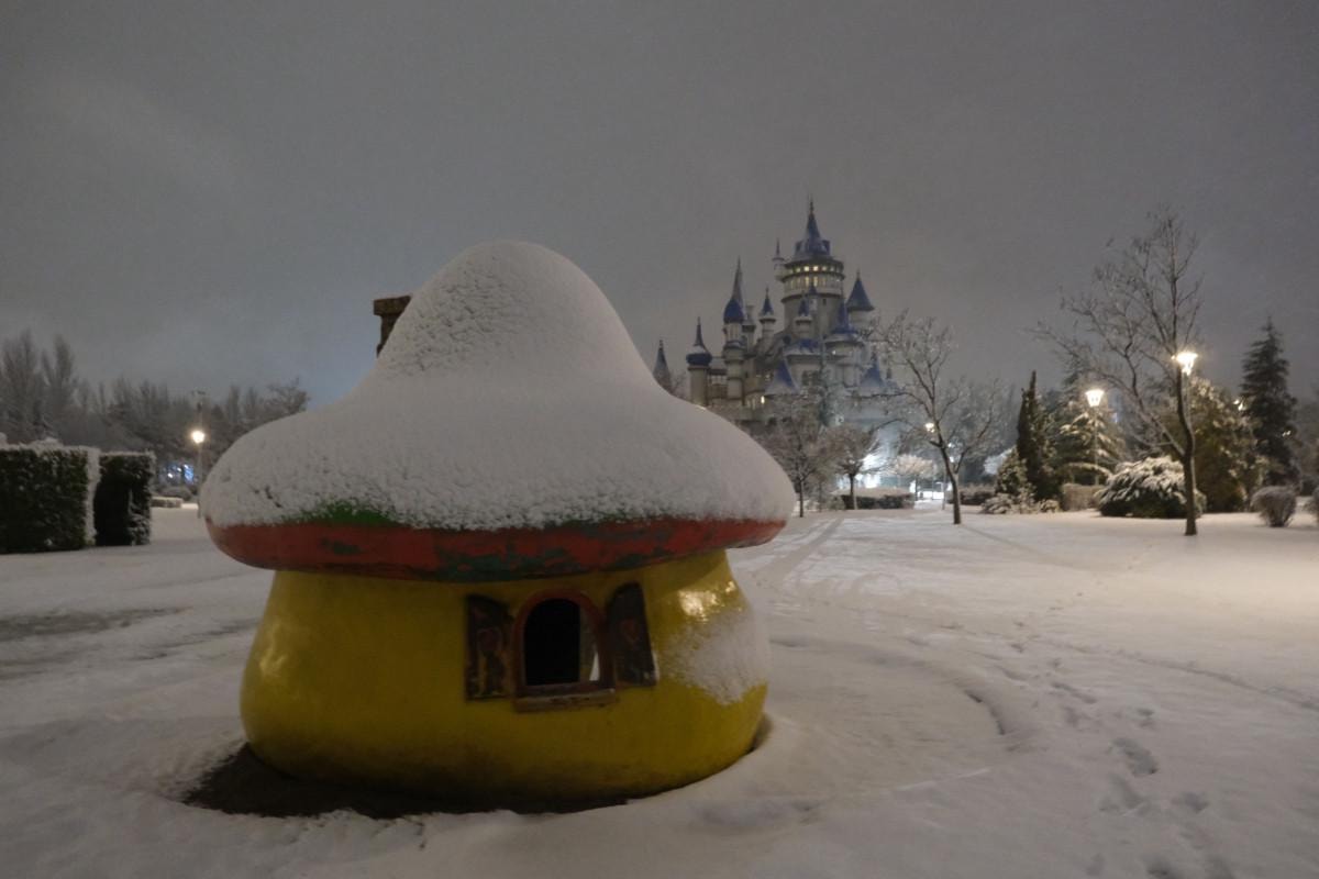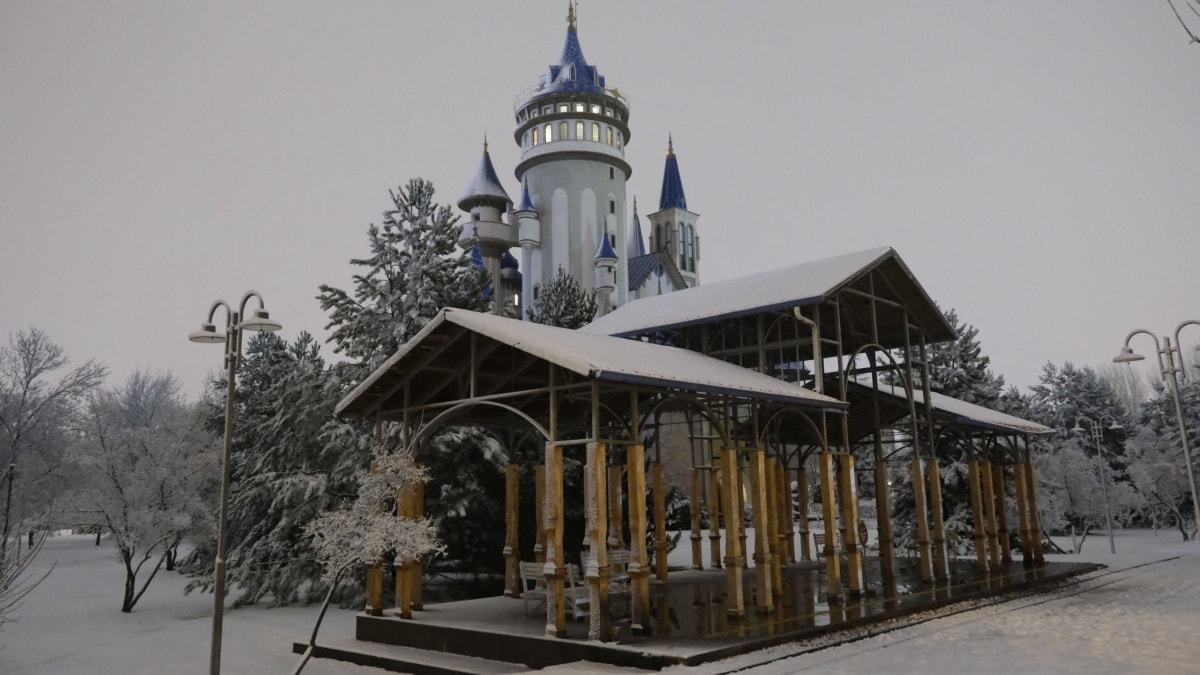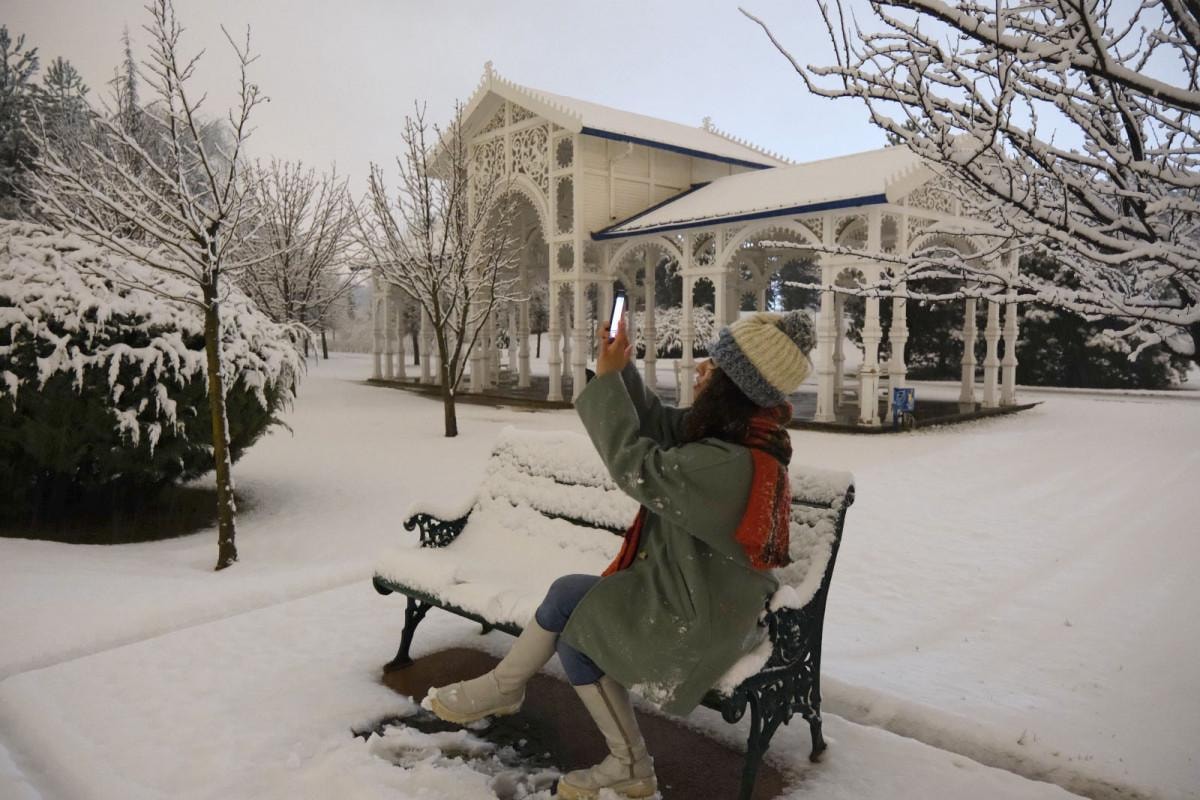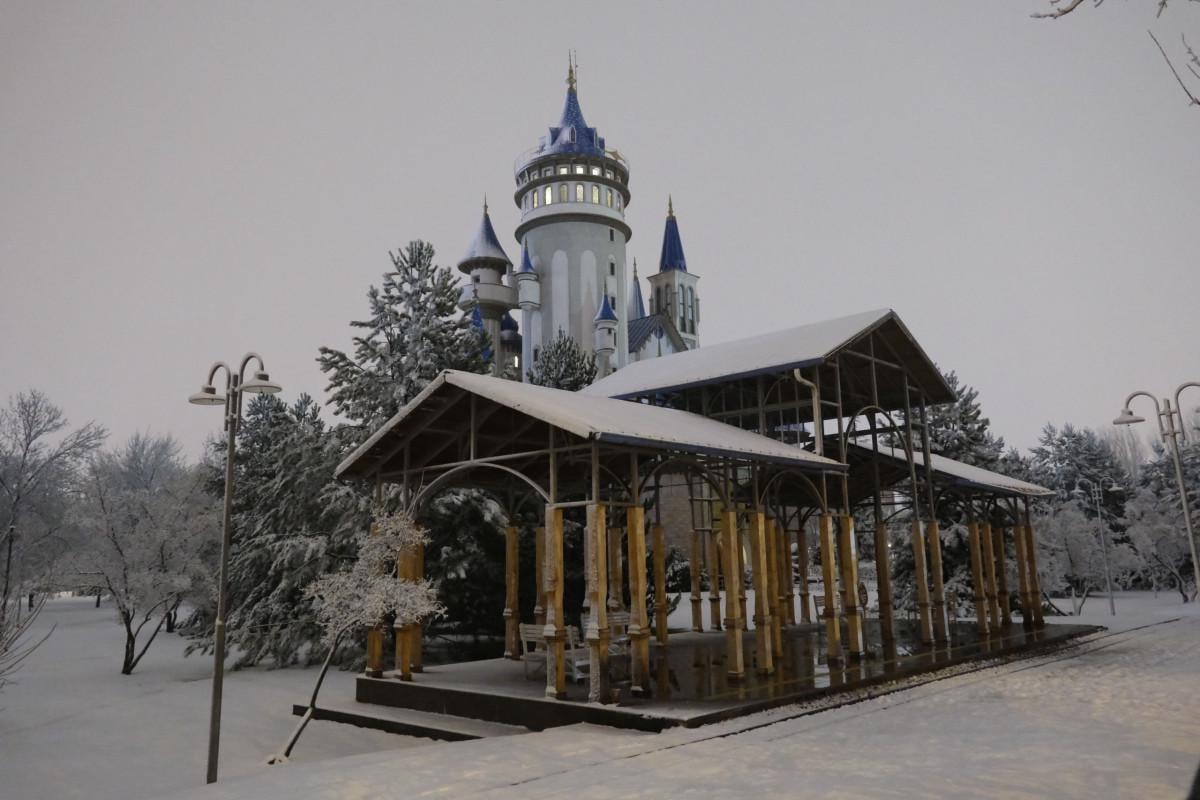 Kar yağışıyla birlikte Büyükşehir Belediyesi Sazova Bilim, Sanat ve Kültür Parkı da beyaz örtüyle kaplandı.