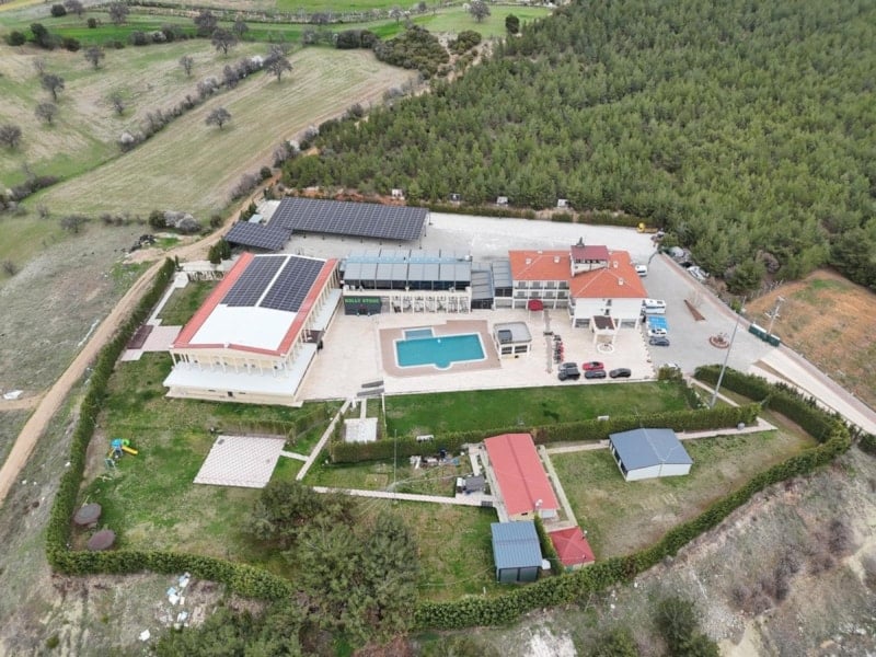 Havadan drone ile görüntülenen Yalım Garden Otel, restoran ve eğlence mekanlarından oluşan yerleşkede, operasyonda el konulan diğer araç ve motosikletler de bulundu. Şehir merkezine 15 kilometre uzaklıkta olan tesislerin kayyum atanmasının ardından henüz faaliyet göstermediği öğrenildi.