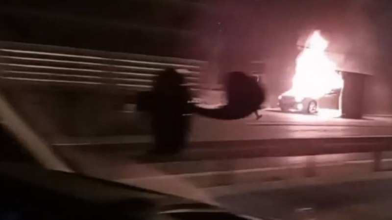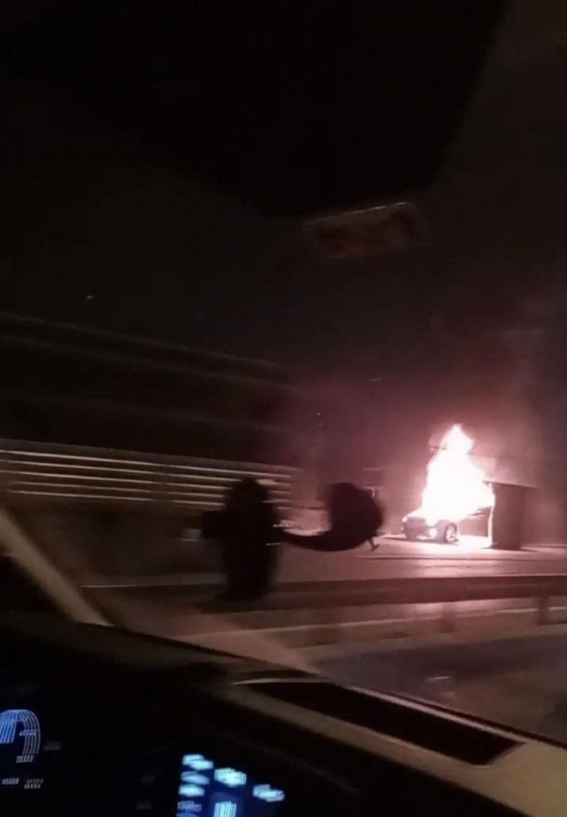 Gelen itfaiye ekipleri, müdahale ederek yangını söndürdü. Otomobilin kullanılamaz hale geldiği yangın cep telefonu kamerasına yansıdı.