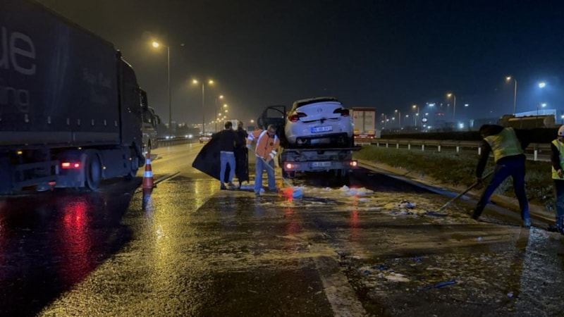 İstanbul'da TEM Otoyolu Ankara istikametinde ilerleyen otomobilde yangın çıktı.