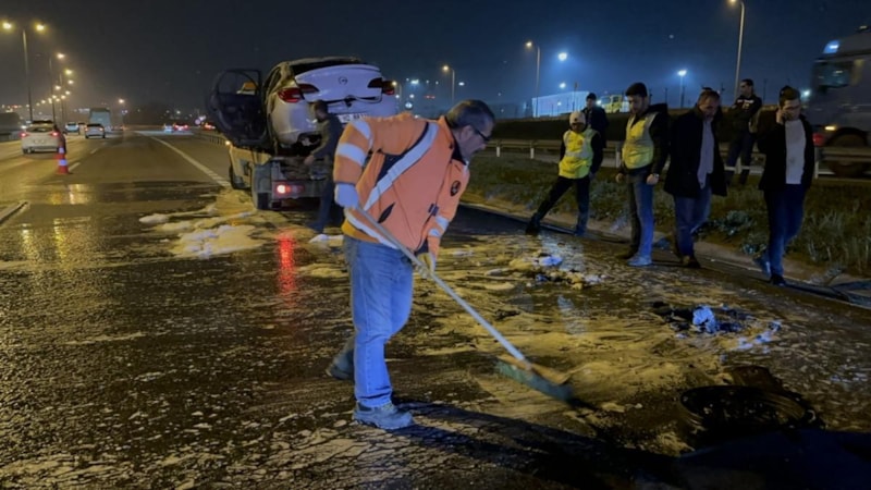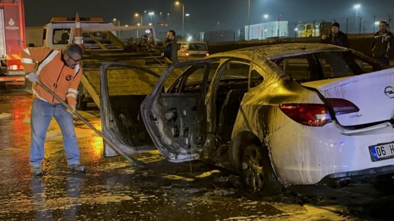 Otomobili emniyet şeridine çeken sürücü, yangını elleriyle söndürmeye çalıştı. Alevler kısa sürede otomobili sararken, durumu fark eden diğer sürücüler durumu ekiplere haber verdi.