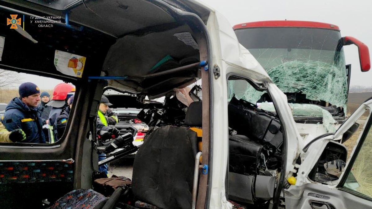 Hmelnitskiy bölgesindeki Kropivnitskiy-Znamenka karayolunda seyir halinde olan bir otobüs ve bir minibüs çarpıştı.