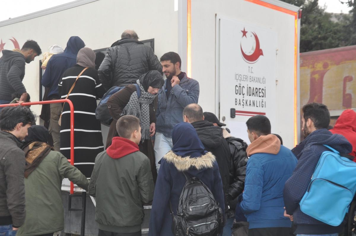 Sabahın ilk ışıklarıyla gümrük kapısına gelen Suriyeliler, Göç İdaresi Başkanlığı'nın mobil hizmet aracından işlemlerini yaptırıp, beraberinde getirdikleri eşyalarla birlikte ülkelerine geçiyor.