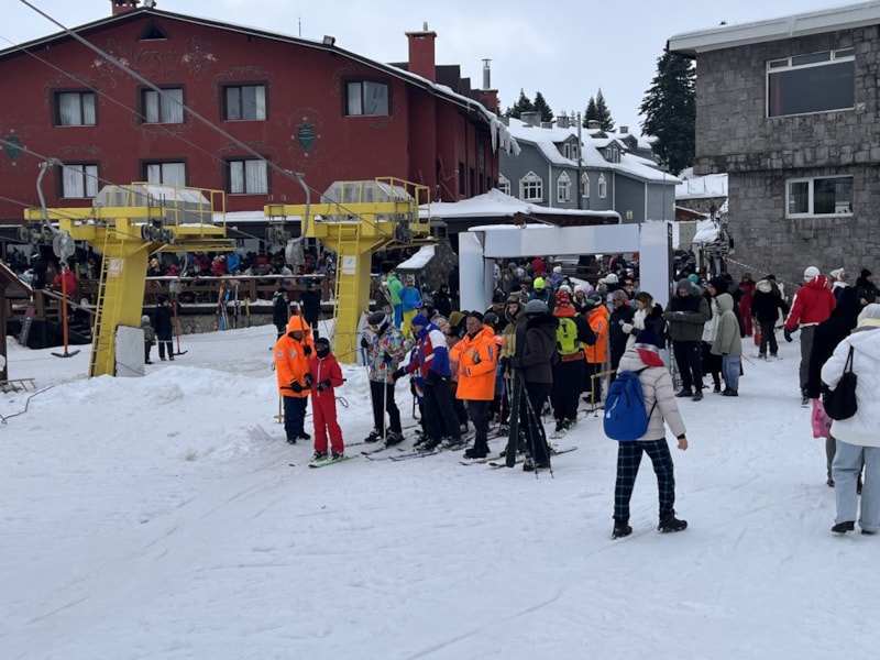 Güneşli havayı fırsat bilen tatilciler oteller bölgesine akın edince, kayak pistlerinde adım atacak yer kalmadı.