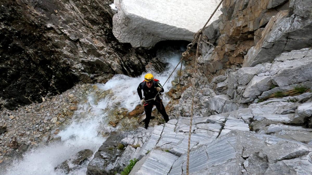 Bu sefer eriyen kar yüzünden suyun çok olduğu mağaranın üzerine ipler yardımıyla istasyon kurup tırmanan usta dağcılar azgın akan kar sularına rağmen mağaranın içerisine girmeyi başardı.