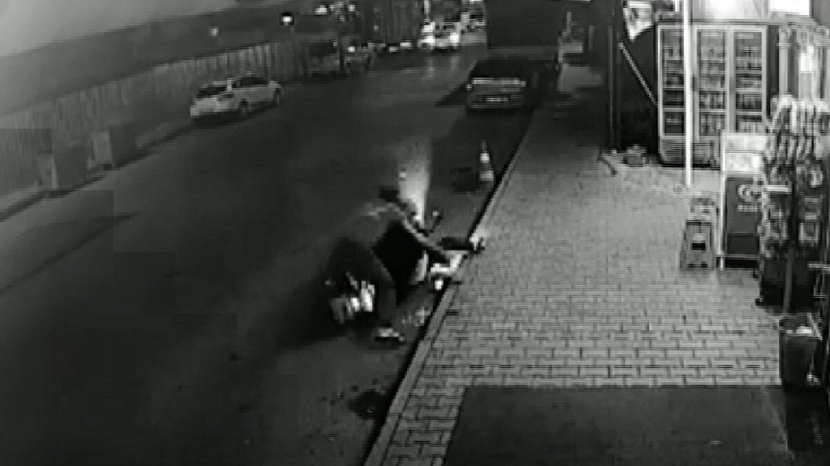 Öte yandan olay anı ise bir iş yerinin güvenlik kamerasına yansıdı.