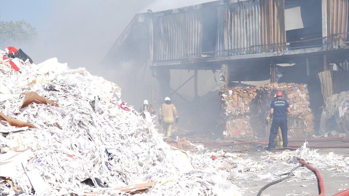 İstanbul'un Ümraniye ilçesine bağlı Esenkent Mahallesi'nde, özel bir firmaya ait kağıt geri dönüşümü yapılan depoda, ilk belirlemelere göre elektrik kontağından kaynaklı yangın çıktı.