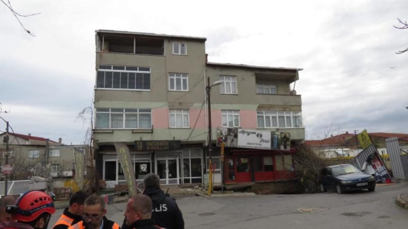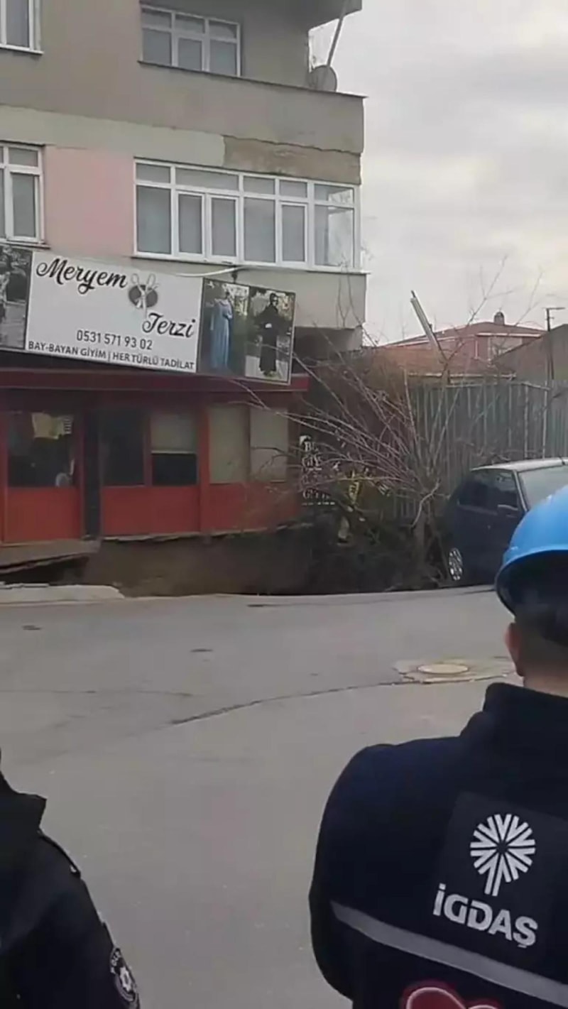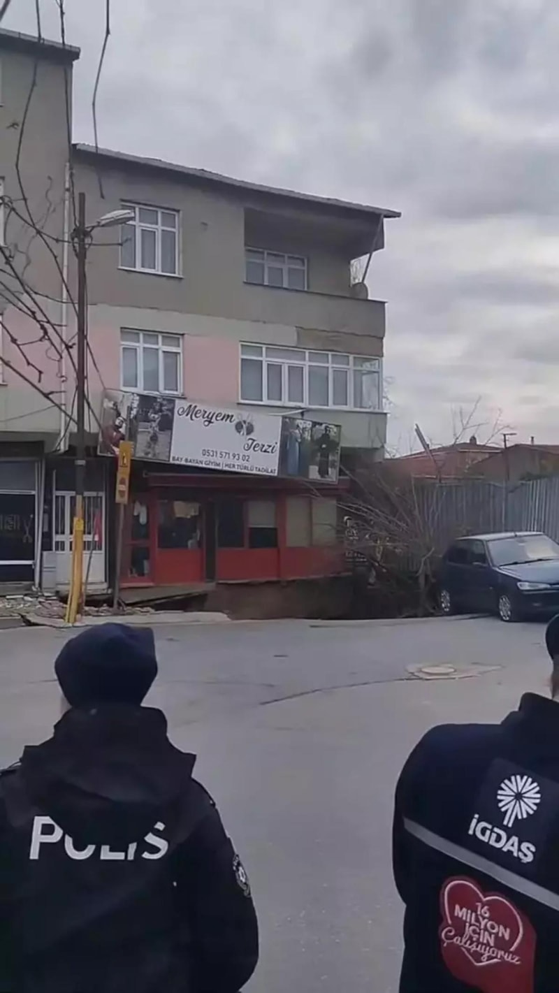 İstanbul Büyükşehir Belediyesi'nin metro çalışması sırasında çöken yolun üzerinde yer alan bina da tahliye edildikten dakikalar sonra çöktü.
