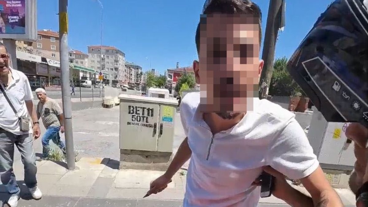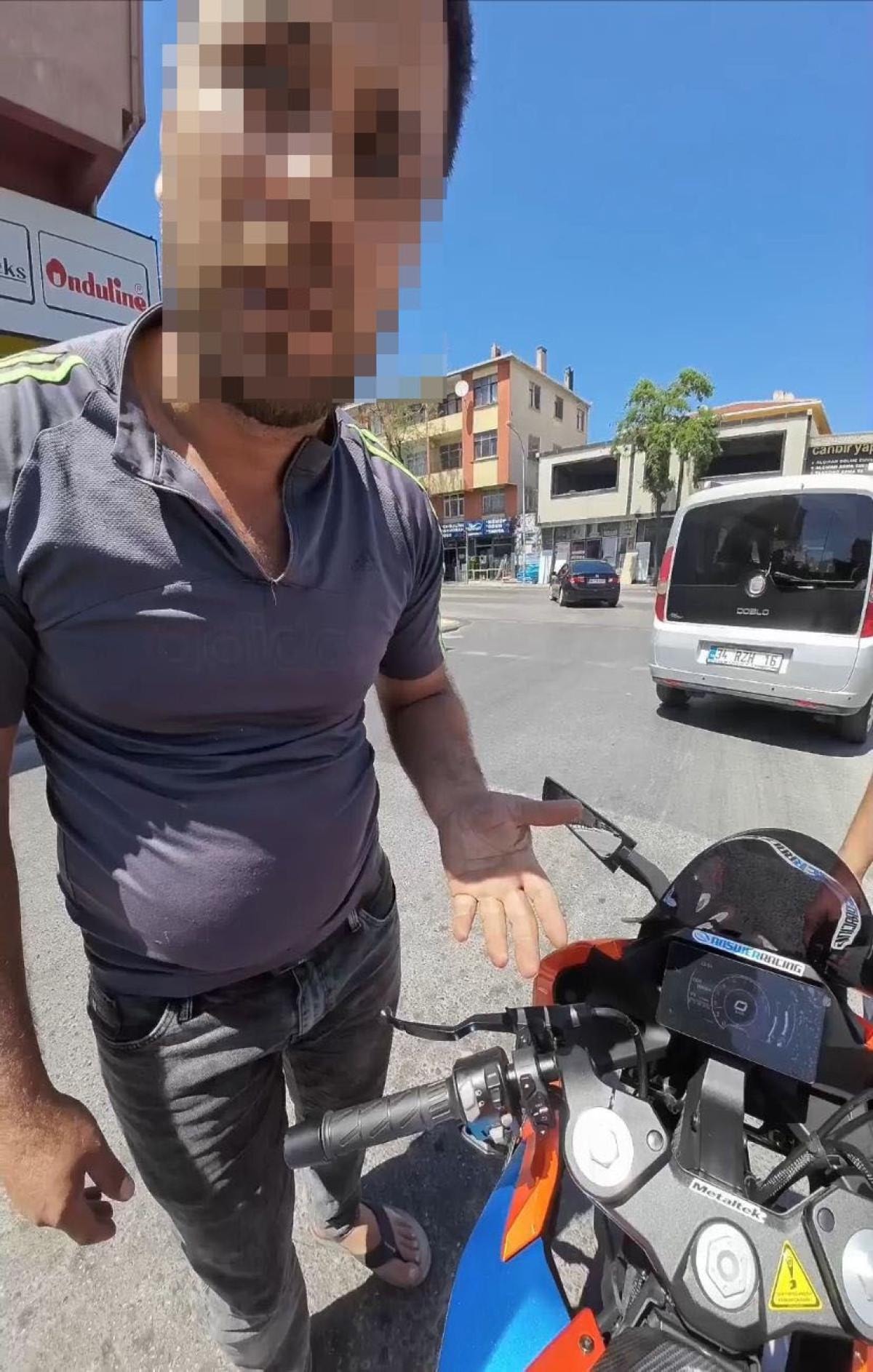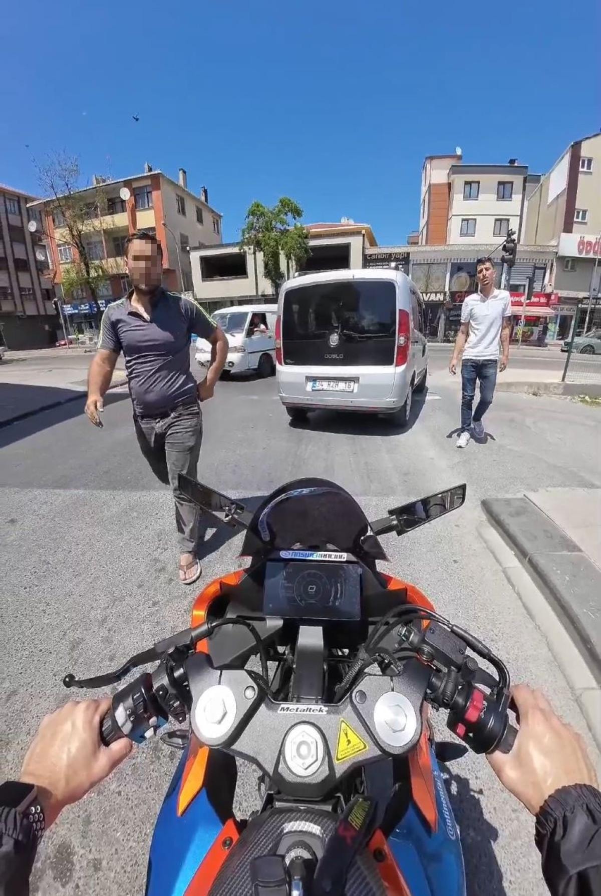 İstanbul Ümraniye'de yaşanan olayda bir otomobil sürücüsü, trafikte tartıştığı motosiklet sürücüsünün kırmızı ışıkta durduğu sırada yanına gelerek küfretmeye başladı.