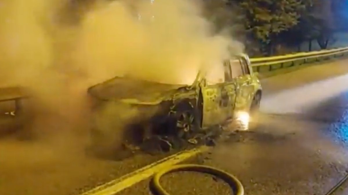 Yangını fark eden sürücü, aracı kenara çekerek canını zor kurtardı.