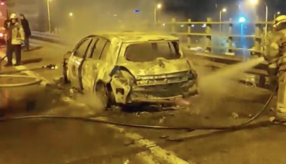 Alevler kısa sürede otomobilin tamamını sararken, sürücü ekiplere haber verdi.
