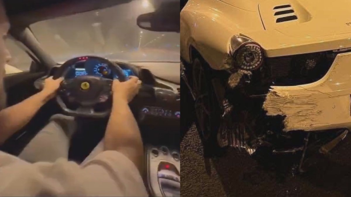Çift, kazayı hafif sıyrıklarla atlatırken, Ferrari kullanılamaz hale geldi.
