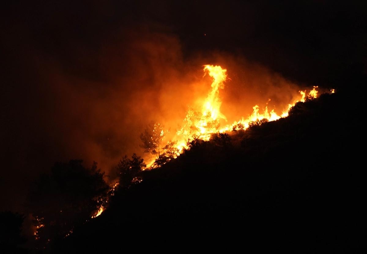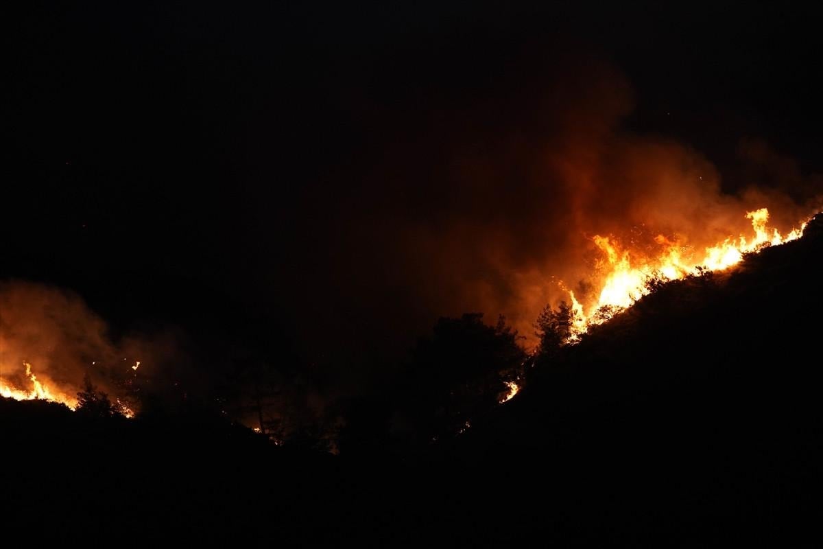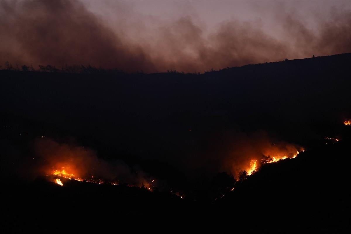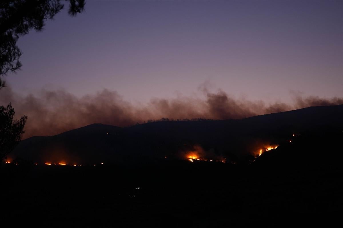 Orman Genel Müdürlüğüne ait 4 uçak, 12 helikopter, 36 arazöz, 10 su ikmal aracı, 4 dozer ve 8 yer ekibi yangını kontrol altına alma çalışmalarını sürdürüyor.