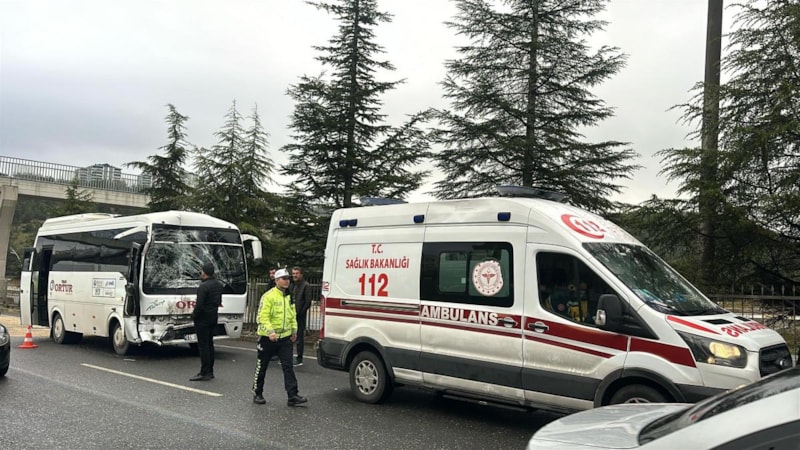 112 Sağlık ekiplerince 64 S 0272 plakalı midibüs sürücüsü ve aynı serviste bulunan 19 işçi çevredeki hastanelere kaldırıldı.