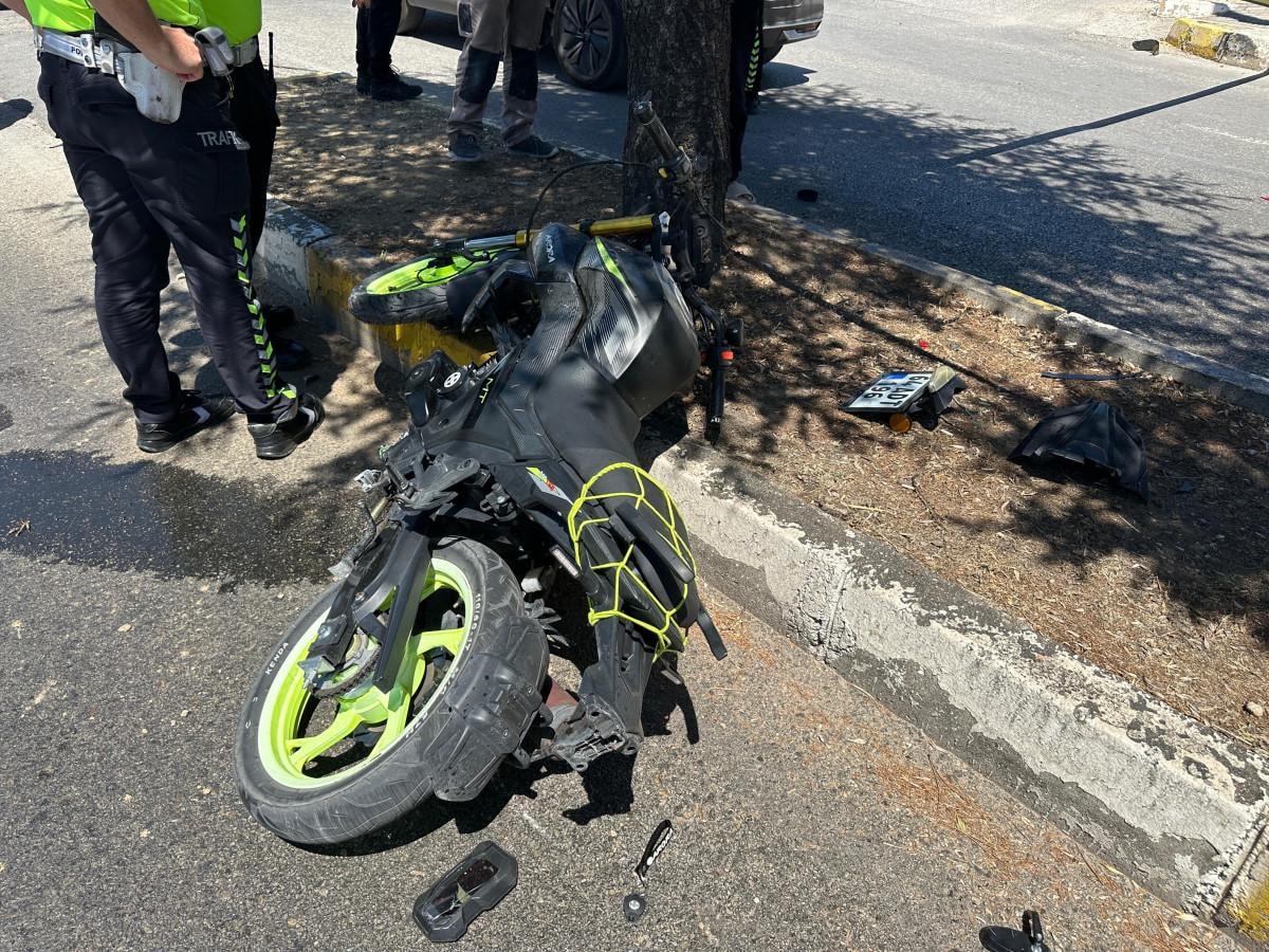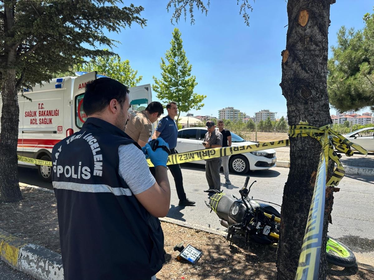 Çarpışmanın etkisiyle motosiklet savrularak refüjde bulunan ağaca çarptı.