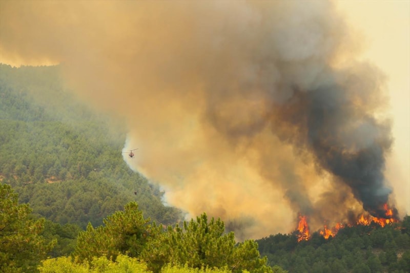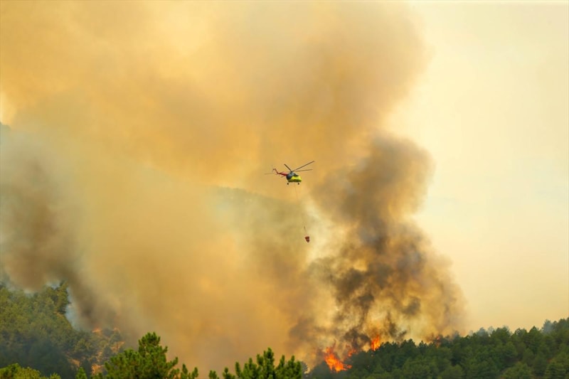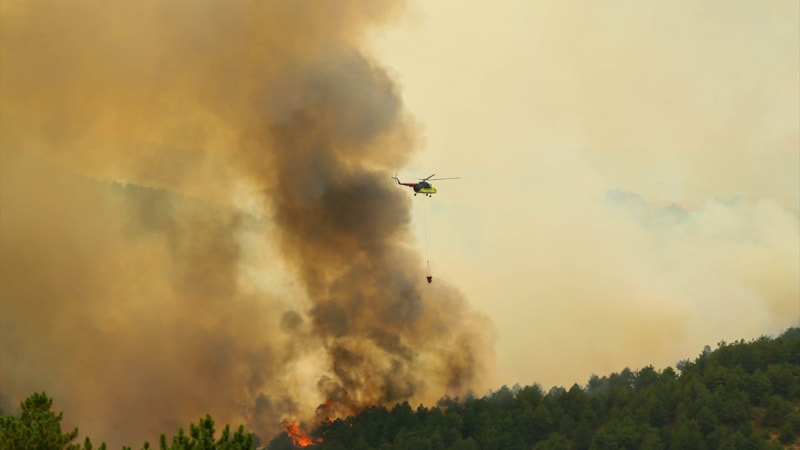 Ekiplerin hem karadan hemde havadan yangına müdahalesi sürüyor.