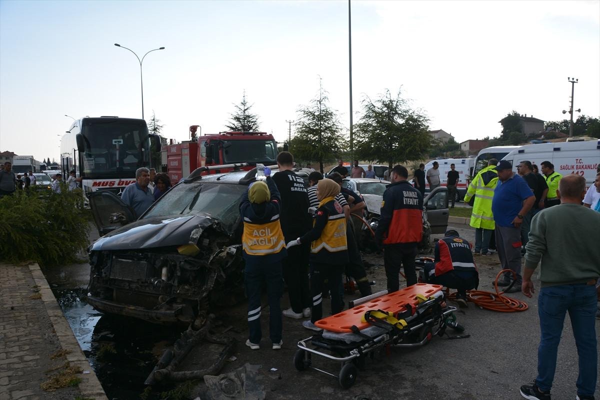 Uşak'ın Banaz ilçesi Ankara-İzmir kara yolunda S.D. (30) idaresindeki otomobil, karşı şeride geçip A.A. (42) yönetimindeki araca çarptı.