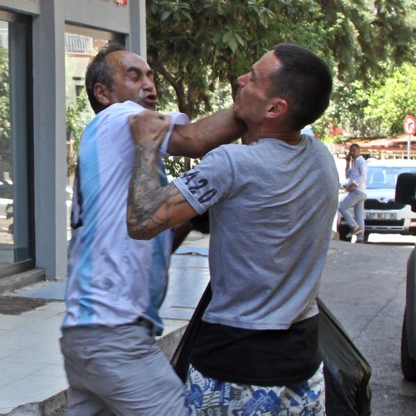 Dün öğle saatlerinde ise apartman sakinleri, içerisinde bazı eşyaların yer aldığı büyük bir poşetle eve gelen M.G.’yi apartmana sokmadı. Apartman sakinlerinden biri, "Evi yaktığın yetmiyor mu?" diyerek M. G.’nin üzerine yürüdü. Rusya uyruklu M. G.’ye yumruk atan apartman sakinine, araya giren diğer vatandaşlar engel olmaya çalıştı. "Niye geldin?" diye soran apartman sakinine M.G., “Temizliğe geldim. Niye yakıyorsun değil, nasıl yandı demiyorsun. Konuş önce. Ev yanana kadar neredeydin?” diyerek karşılık verdi.