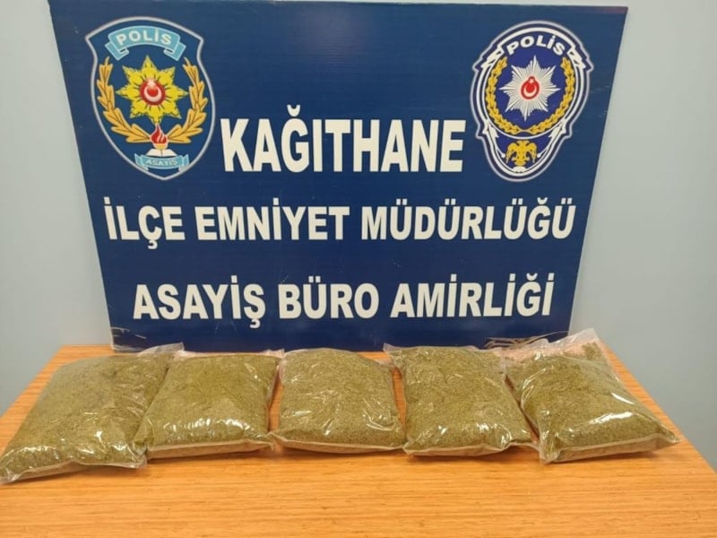 Ardından araçta arama yapan polis ekipleri, sağ ön koltuktaki poşetin içerisinde 5 parça halinde piyasa değeri yaklaşık 250 bin lira olan 5 kilogram 500 gram bonzai diye bilinen uyuşturucu madde ele geçirdi.