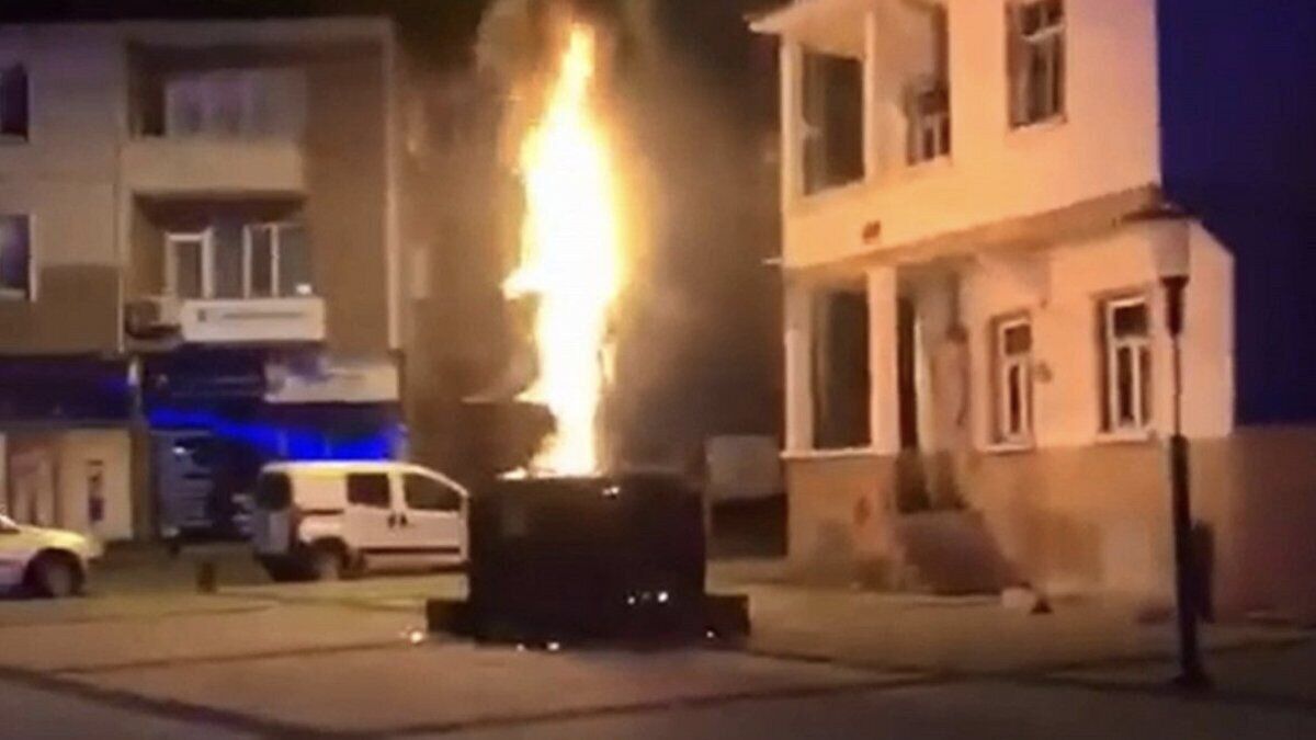 Edirne'de Uzunköprü Adalet Meydanı'nda kimliği belirsiz kişi ya da kişiler, meydanda bulunan Adalet Anıtı'nı ateşe verip kaçtı.