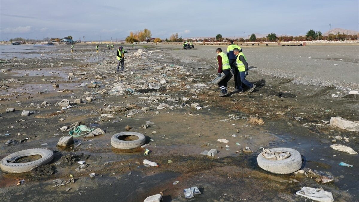 Van’da İpekyolu Belediyesi, Van Gölü'nde meydana gelen çekilmeler sonucu ortaya çıkan atıkların toplanması için çalışma başlattı.
