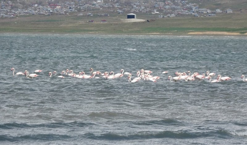 Van Gölü kıyılarında küresel ısınmaya bağlı suyun geri çekilmesi sürerken, flamingoların konakladığı alanlar da değişti.